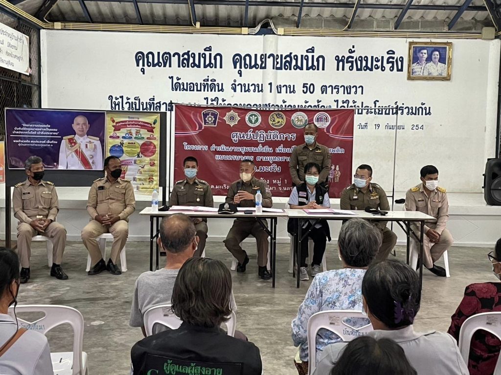 วันที่ 23 ก.พ.66 เวลา 17.30 น. พ.ต.อ.คณัสนันท์ สุวรรณทรัพย์ ผกก.สภ.มะเริง พร้อมด้วย พ.ต.ท.สุทธิรักษ์ ลัคนาลิขิต รอง ผกก.ป.ฯ, พ.ต.ต.กฤษณพล พีระพันธ์ สวป.ฯ หัวหน้าชุดชุมชนยั่งยืน, ชุดปฏิบัติการชุมชนยั่งยืน สภ.มะเริง, จิตอาสา สภ.มะเริง ร่วมกับ นางธราทิพย์ ทัพพพันธ์ พยาบาลวิชาชีพชำนาญการ, จนท.รพ.สต.บ้านพระ, นายสมศักดิ์ รามมะเริง ผู้ใหญ่บ้านหัวช้าง ม.1 ต.มะเริงฯ, นายเมธา จากมะเริง ตัวแทน อบต.มะเริง, นางบุญจันทร์ เชยโพธิ์ ประธาน อ.ส.ม ร่วมประชุมแนะนำโครงการ แนวทางการปฏิบัติตามโครงการชุมชนยั่งยืน จัดทำ MOU ระหว่างชุมชนบ้านหัวช้าง กับ สภ.มะเริง และหน่วยงานที่เกี่ยวข้อง และได้ทำการสอบถามปัญหา รวมถึงได้รับข้อเสนอแนะต่างๆ จากชาวบ้านในชุมชน ดังนี้