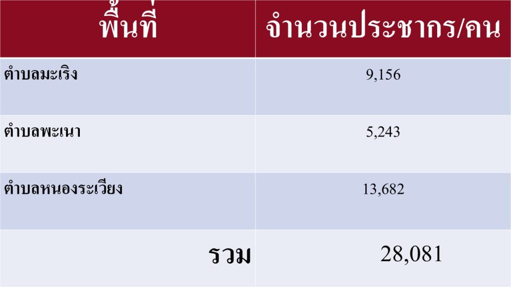รับผิดชอบพื้นที่ 83.22 ตารางกิโลเมตร 3 ตำบล ได้แก่
