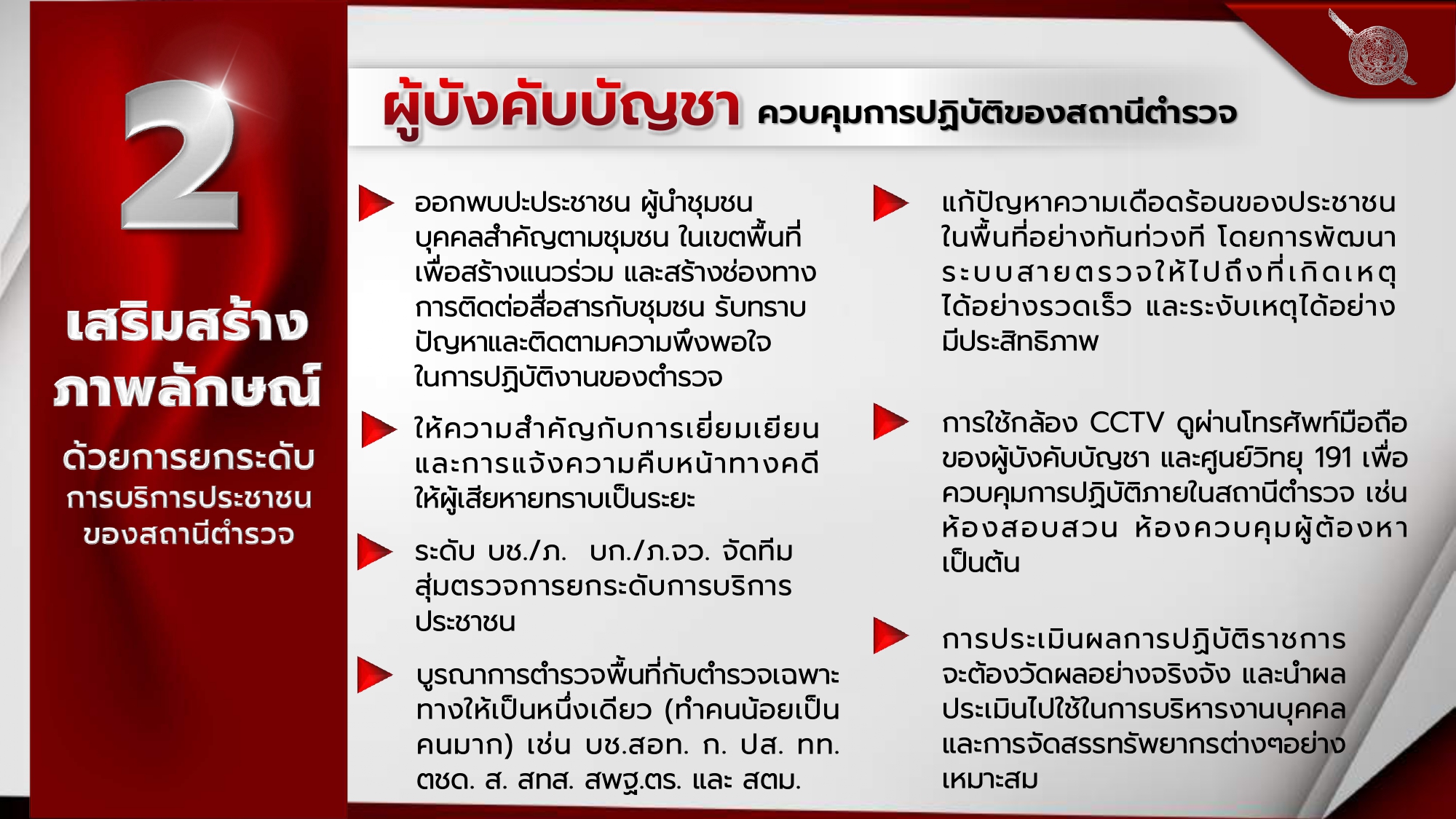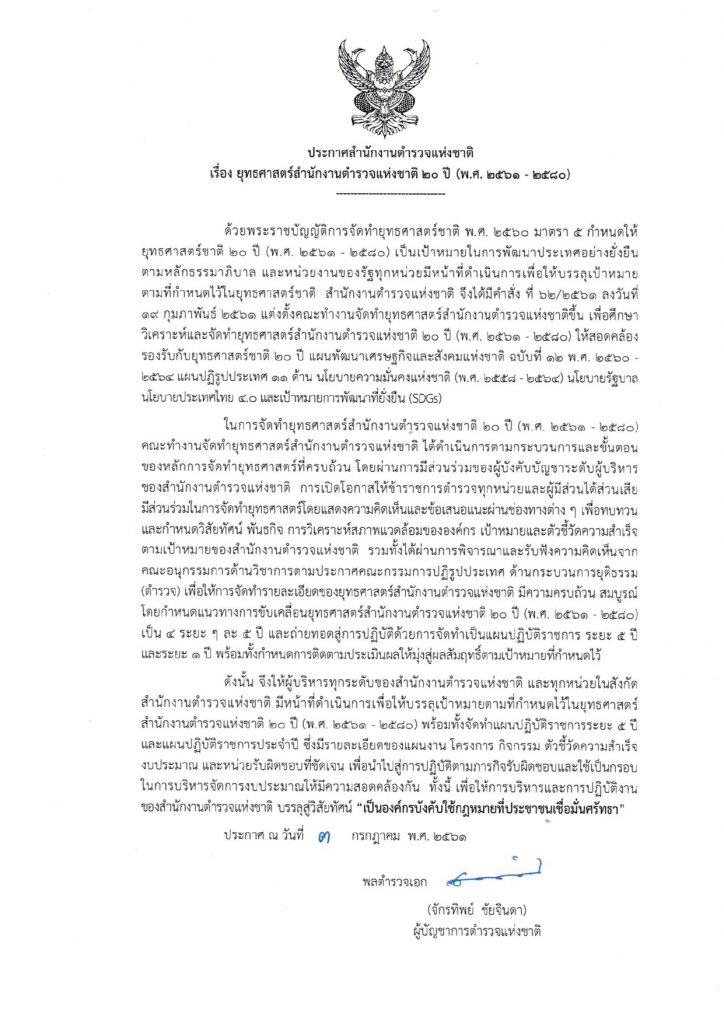 O2 นโยบายผู้บัญชาการตำรวจแห่งชาติ และยุทธศาสตร์สำนักงานตำรวจ แห่งชาติ 20 ปี